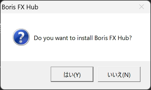 「Do you want to install Boris FX Hub?」と表示されたら、「はい」をクリックします。