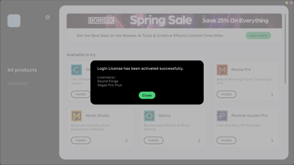 私が購入した時点では、Boris FXのSpring Saleが開催されており、25%オフで購入できました。