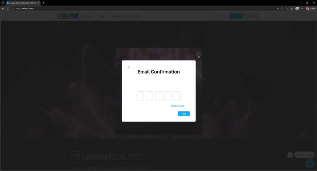 Boris FXから、登録したメールアドレス宛てに認証コードが届きます。