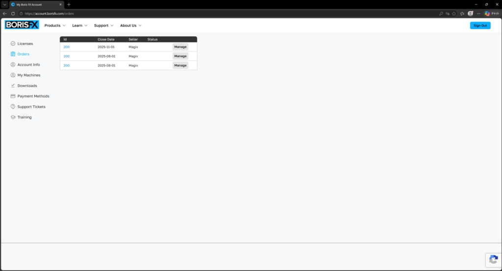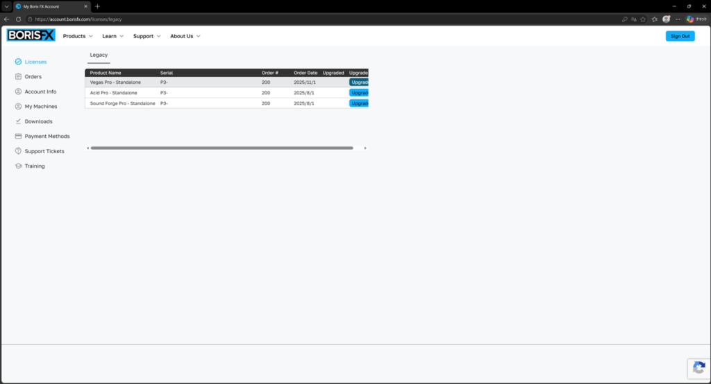 MAGIX版からのアップグレードを考えている方は、まずBoris FXのマイページで自分のライセンスが表示されているか確認してみると良いと思います。